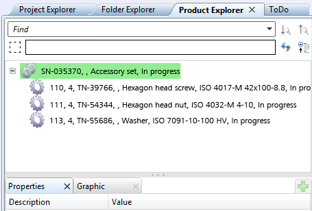 - In the context menu, select Enter item (via article search). Search for the nut, e.g. a hexagon nut, and apply it. (Quantity: 4).