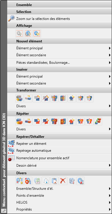Fonctions du menu contextuel de l'ICN pour les éléments 3D |