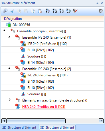 Puisque notre but est de créer des dessins d'exécution contenant uniquement des profilés ou uniquement des tôles au lieu de dessins d'éléments individuels, nous utilisons ici cette fonction et non pas la dérivation automatique des dessins.