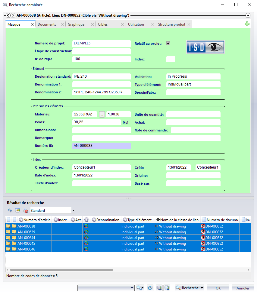 Le nouveau profilé doit maintenant apparaître uniquement sur le dessin d'exécution des profilés. Dans ce cas, il suffit de créer un nouvel index à l'aide de la fonction Index de modification d'un dessin de fabrication.