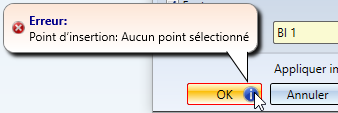 qui apparaît sur le bouton OK. Placez le curseur sur le symbole pour afficher le message d'erreur.
