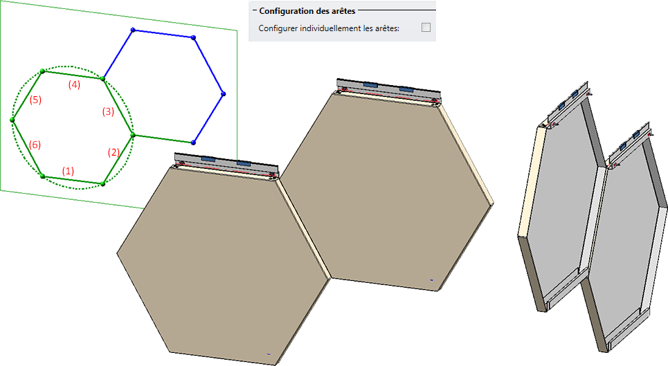 Dans l'illustration suivante, le calepinage est effectué avec configuration des arêtes :