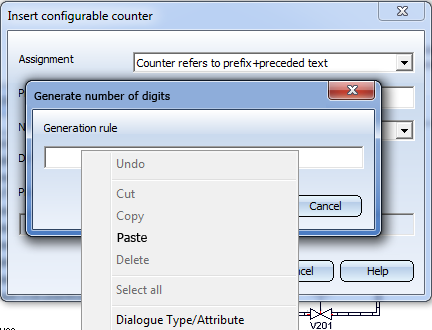 With the option Generate via rule you can determine the number of digits of the text key %XDIGITS. After selecting this option, click the Generate button. In the context menu of the input field in the displayed dialogue window, you can then right-click, choose Dialogue type/Attribute and insert a desired Generation rule.