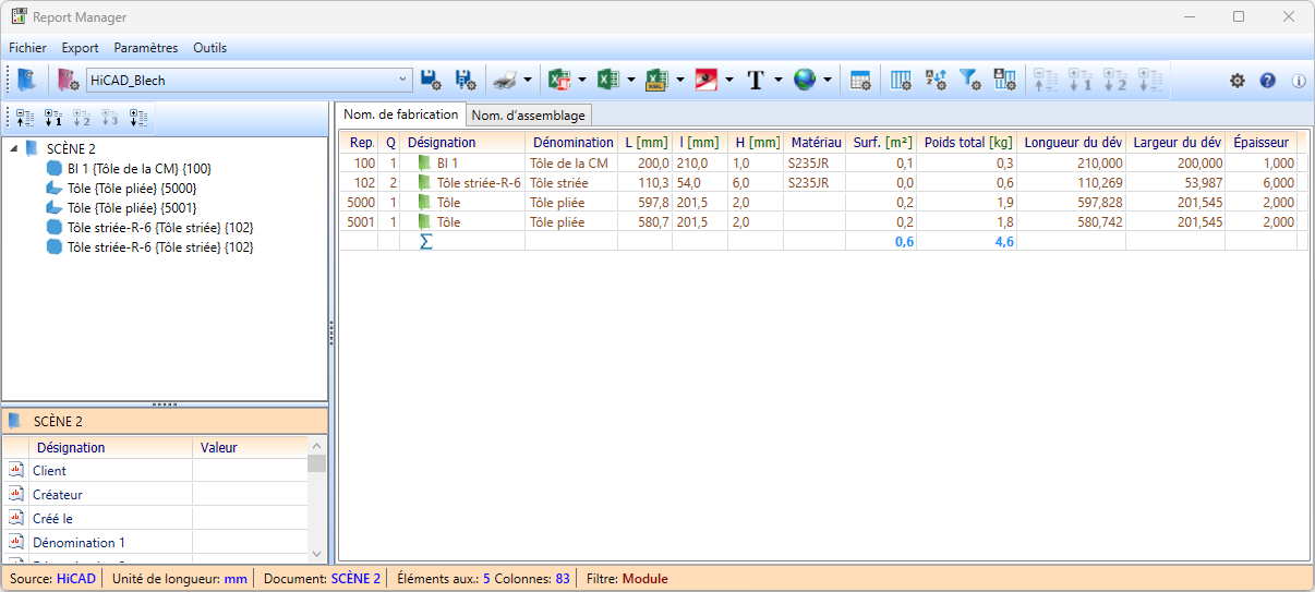 Cela permet notamment de créer des nomenclatures uniformes pour les tôles pliées et les tôles de la Charpente métallique.