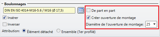 Le boulonnage ne sera inséré que si la case Insérer est cochée.