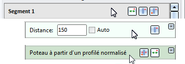 À partir de la liste de répartition de poteau, vous avez également la possibilité d'ajouter de nouveaux poteaux et de nouvelles distances. Vous disposez pour cela dans chaque ligne de Segment, ainsi que dans chaque ligne de Distance et de Poteau, des symboles correspondants.