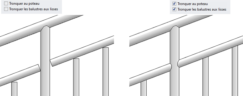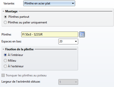 la variante Ne pas créer soit sélectionnée. Par ailleurs, il faut que dans l'onglet Poteau un décalage latéral par rapport à la main courante soit indiqué.