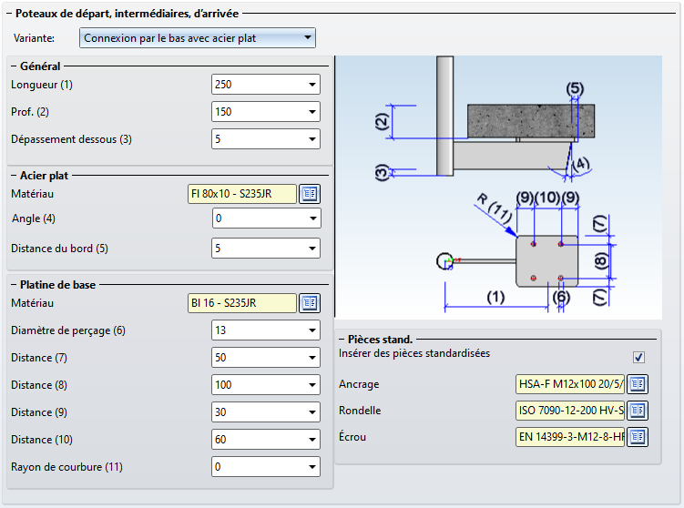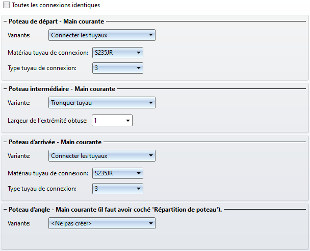 Si vous souhaitez utiliser la même variante pour tous les poteaux, cochez alors la case Toutes les connexions sont identiques.