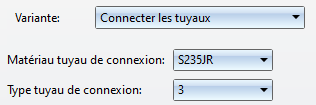 Dans la variante Connecter les tuyaux, sélectionnez le matériau pour le tuyau de connexion, puis le type. Ce dernier détermine le rayon de courbure :