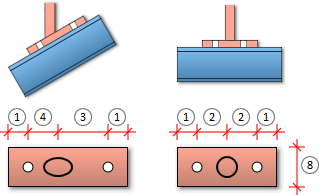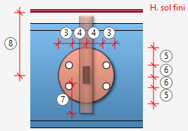 • Distance du perçage, c'est-à-dire la distance du centre du perçage par rapport au centre du poteau (4)