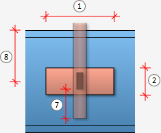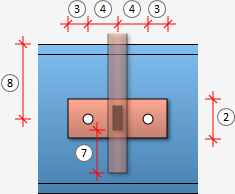 Selon le type de profilés sélectionnés, ceux-ci seront divisés en plusieurs sections. Le premier profilé appartient à la section 1. HiCAD vérifie si le profilé suivant se trouve sur le même plan. Si c'est le cas, il appartient également à la section 1. S'il ne se trouve pas sur le même plan, la section 2 commencera par ce profilé et ainsi de suite. Pour la connexion des poteaux latéraux, il est possible de spécifier séparément la Distance milieu de la platine (8) et donc la hauteur de la fixation. Si la distance doit être identique pour toutes les zones, cochez alors la case Partout égal.