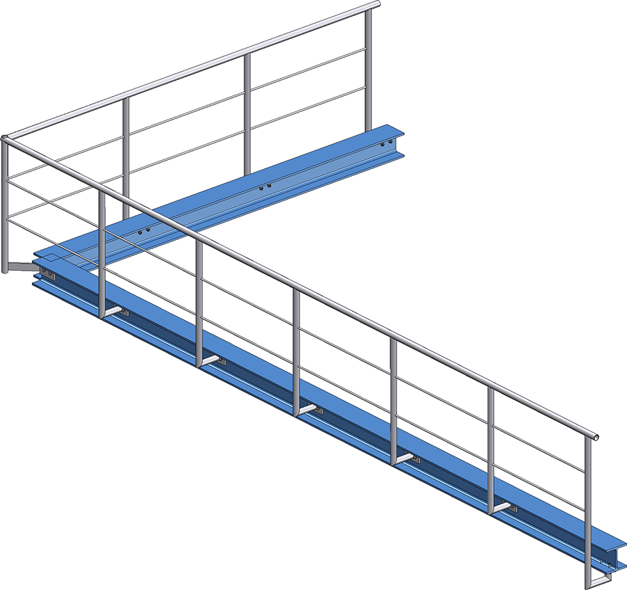 À l'aide du configurateur de garde-corps, il est possible par une macro de configurer individuellement et d'insérer des rambardes le long de poutres de charpente métallique, par exemple pour des escaliers que vous auriez créés avec le configurateur d'escalier ou pour des plateformes.