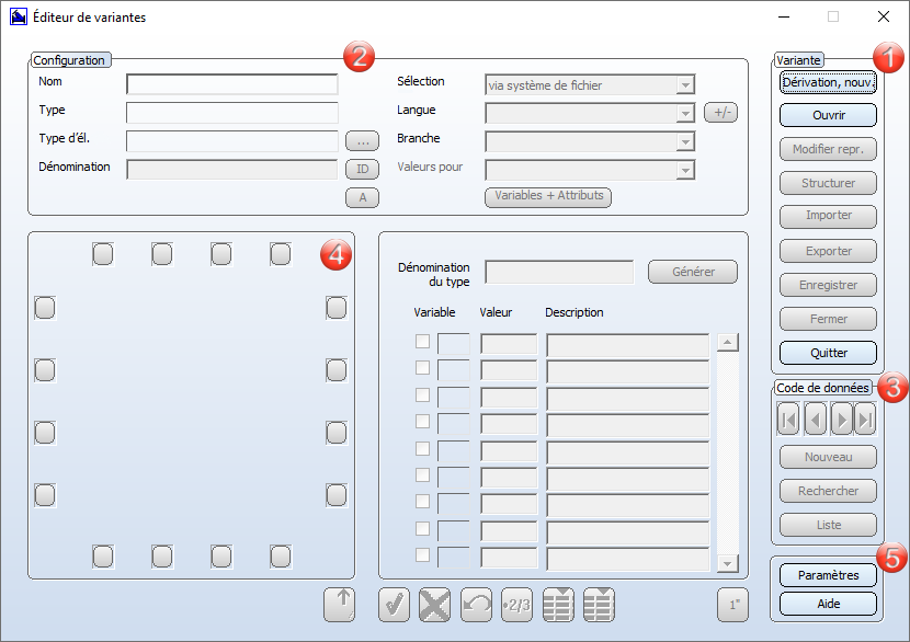 Après le lancement de l'éditeur de variantes pour Tuyauteries+Process , la fenêtre de dialogue suivante s'ouvre.