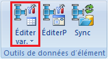 Lancez sous Outils de données d'élément la fonction Éditer var. :