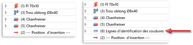 Standard 3D > Usinages normés > Perçage > Lignes d'identif. des soudures
