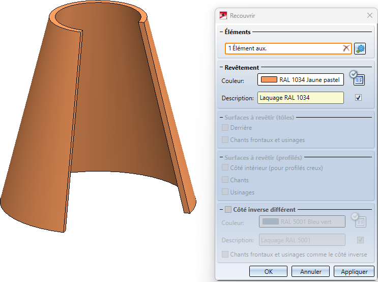 Les dimensions sont à jour, l'orientation des dimensions résulte du système de coordonnées de l'élément. |