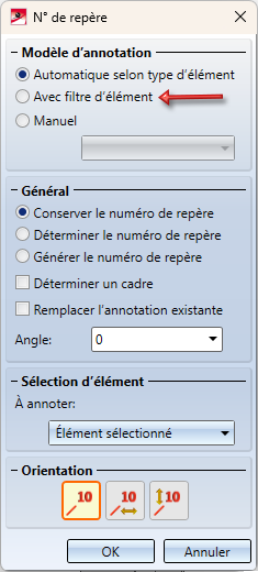 Si la scène actuelle n'est pas une modélisation de repérage, le numéro de repère de l'élément est alors chargé/actualisé à partir du fichier KRA correspondant.