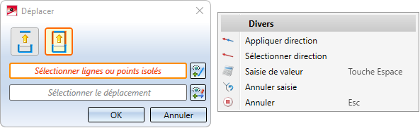 ont été revues et optimisées. Désormais, la distance du déplacement n'est plus indiquée dans la fenêtre de dialogue, mais peut être définie dynamiquement sur une grille de distances dans les directions X et Y. De plus, vous avez ici la possibilité de choisir librement la direction du déplacement via un menu contextuel.