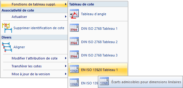 De nouvelles fonctions sont disponibles à partir de SP2 dans le sous-menu Fonctions de tableau suppl. sous Cotations + Annotations 3D > Outils > Extras :