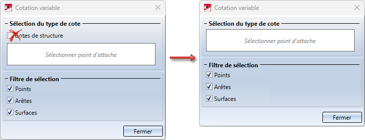 Pour cette raison, la création de cotes de structure avec la fonction Cotation variable
