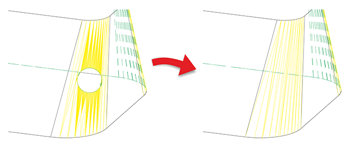 À l'aide de cette fonction, vous pouvez supprimer les arasages des surfaces de forme libre isolées.