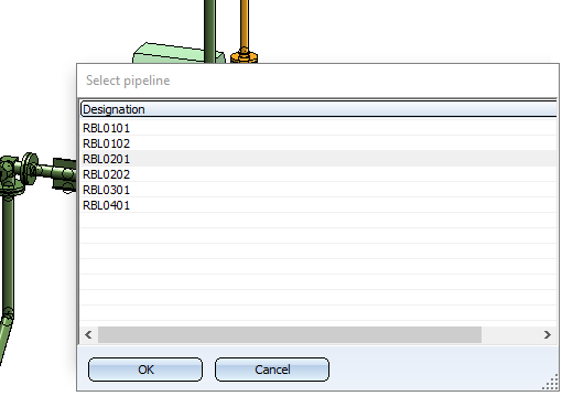 Identify a part of the desired part chain with the cursor. Select no pipe clamp or a loose flange - such parts will be automatically detected if they belong to the part chain.