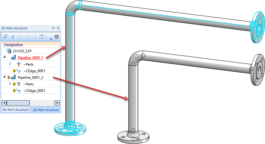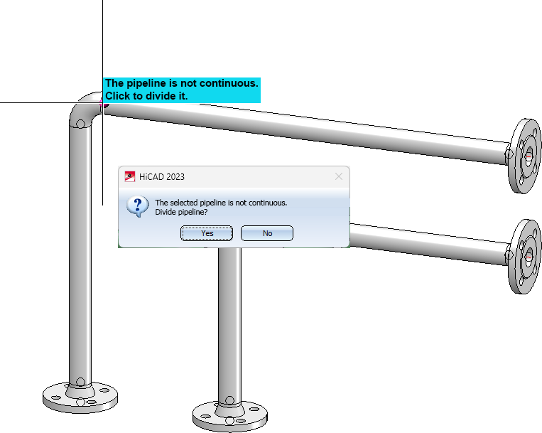 If the pipeline is to be divided, it is sufficient to click on the pipeline and to answer the subsequent query with Yes.