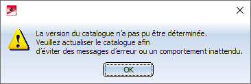 Si la version du catalogue n'est pas déterminée, le message suivant apparaîtra :