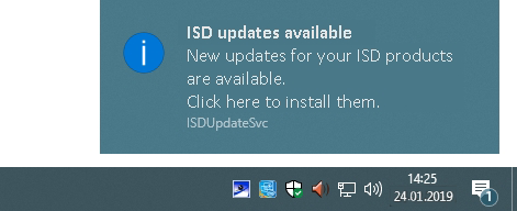 Quand l'ISD Update Service est actif, les correctifs disponibles seront recherchés. Si un correctif disponible est trouvé, une notification correspondante apparaîtra en bas à droite de votre écran.