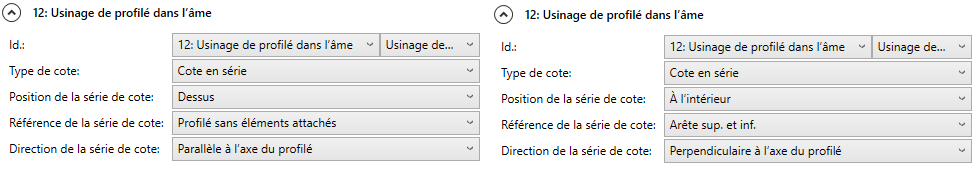 Usinages de profilé dans les ailes supérieure et inférieure, incl. usinages dans la vue latérale |