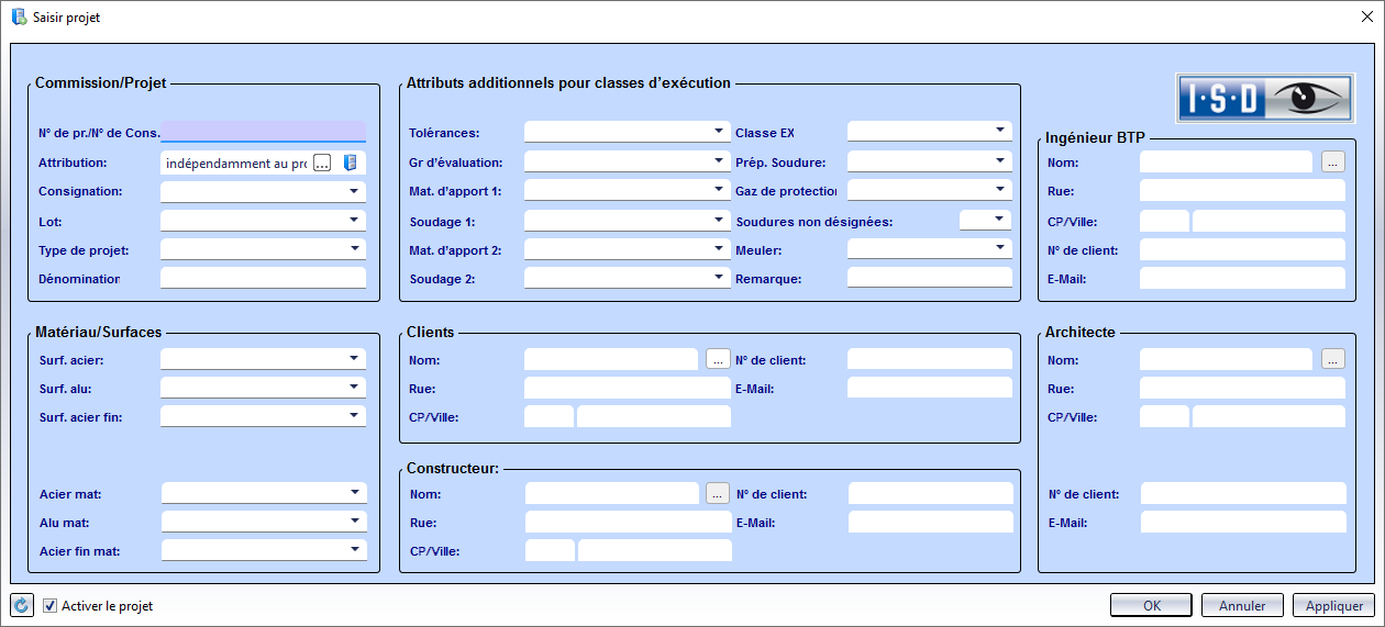 Dans la Configuration des paramètres, les masques de dialogue HELiOS seront remplacés par des masques de dialogue spécialement conçus pour la gestion de dessin (à partir du dossier templates\Module_3DSteel\BIM\sys).