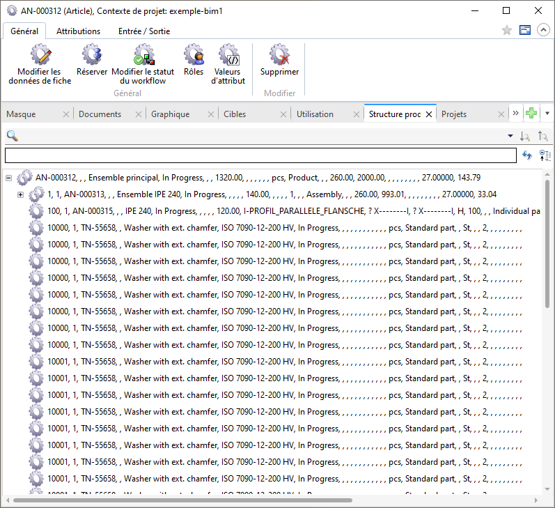 Les paramètres prédéfinis par ISD pour la Gestion de dessin seront utilisés pour notre exemple. Cela signifie, entre autres, que pour le repérage, ce sont les préparamètres de la Charpente métallique qui seront pris en compte.