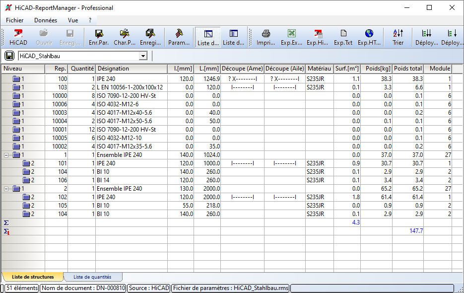 Par un clic sur le bouton OK, la nomenclature est générée.