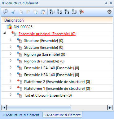 dans le menu contextuel des ensembles (clic droit), - Sélectionnez le Type d'élément : Ensemble de structure.