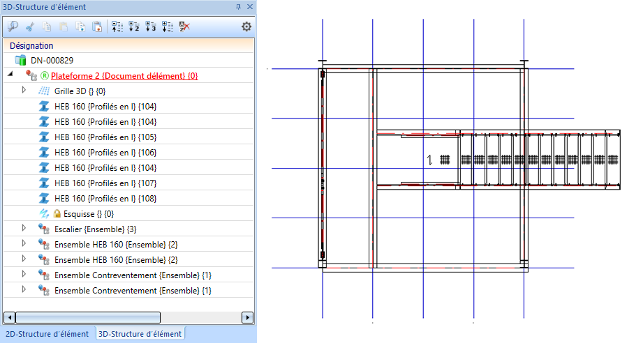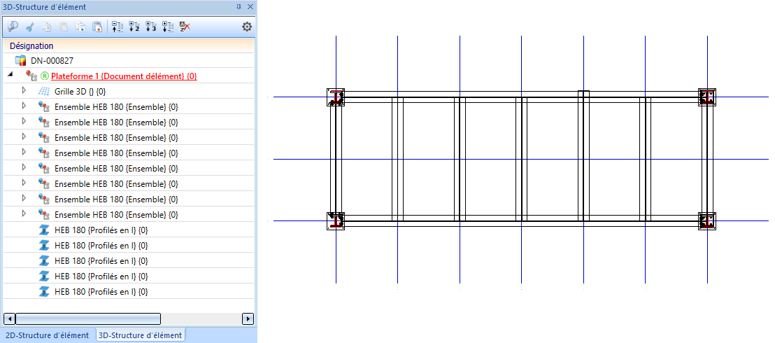 - Activez dans l'ICN l'ensemble Plateforme 1 et lancez à partir du menu contextuel (clic droit) la fonction Référencer l'élément, Enregistrer, Dessin d'élément individuel