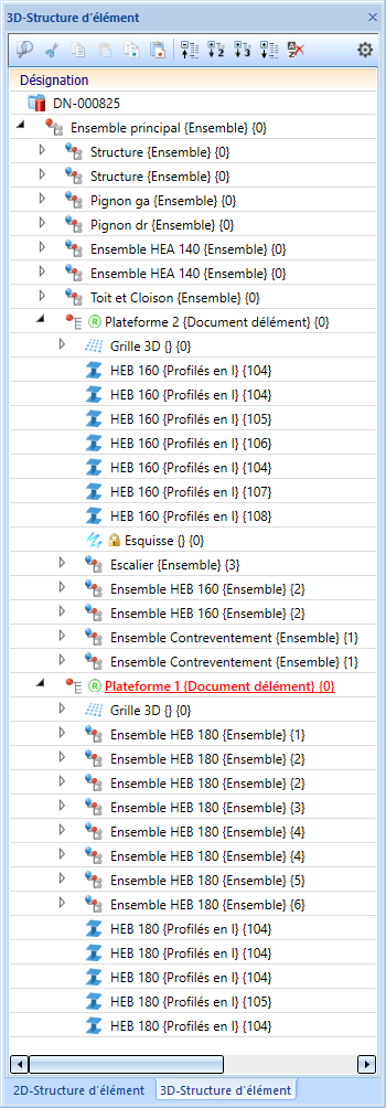 - Convertissez les ensembles Plateforme 1 et Plateforme 2 en ensembles de structure :
