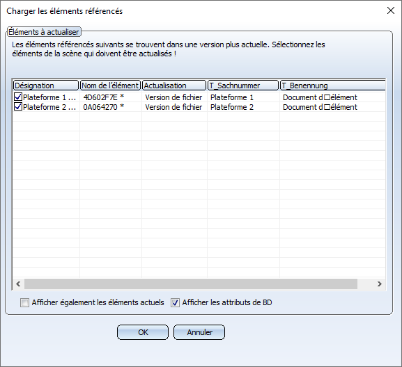 . La fenêtre de dialogue Enregistrer les éléments référencés s'ouvre. Cliquez sur OK pour appliquer les modifications à l'ensemble. - Procédez de la même façon pour la plateforme 2.