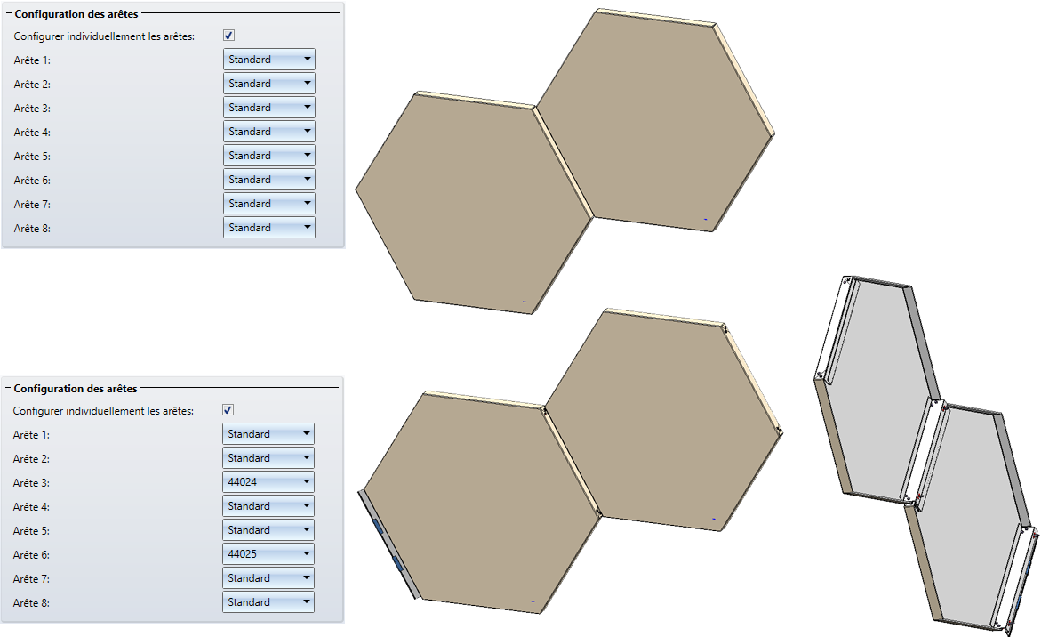 Dans l'illustration suivante, le calepinage est effectué avec configuration des arêtes :