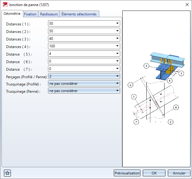 - La fenêtre de dialogue Jonction de panne (1207) s'ouvre alors.