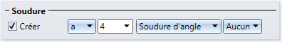Si vous avez choisi le type de connexion Souder, vous pouvez définir ici si la soudure doit être créée. Si oui, sélectionnez le type de désignation de l'épaisseur, l'épaisseur de soudure, le type de soudure et la catégorie de contrôle.