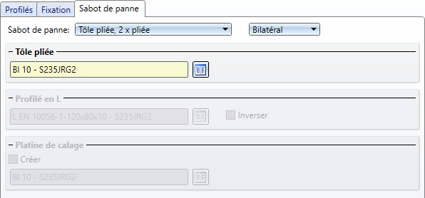 Vous spécifiez ici comment la tôle pliée/le profilé en L sera fixé à l'élément de jonction et à la poutre.