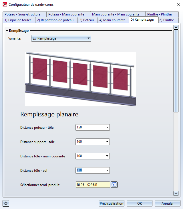Éditeur pour variantes de garde-corps • Escaliers et garde-corps (CM 3D) • Fonctions de la Charpente métallique