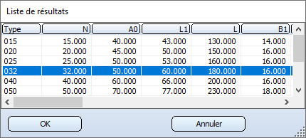 Par OK, la recherche commence. Tous les codes de données qui remplissent les conditions de votre recherche s'affichent dans une liste de résultat.
