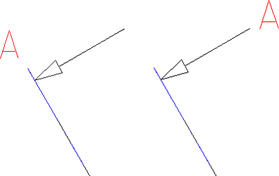 Links: Position der Beschriftung in Verlängerung der Schnittlinie, Rechts: am Pfeil