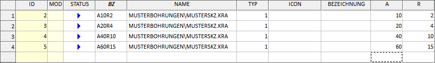 2. Öffnen Sie die Tabelle MUSTERBOHRUNGEN und legen Sie mit Extras > Tabelle > neu eine neue Tabelle für die Musterbohrung an, z.B. MUSTERSKZ.