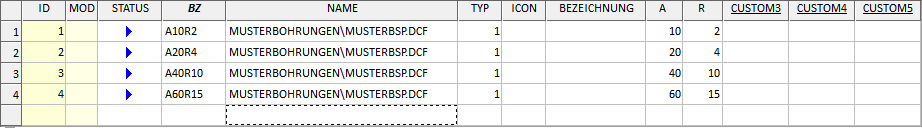 4. Die neue Tabelle enthält die Spalten ID, MOD, STATUS und BZ.