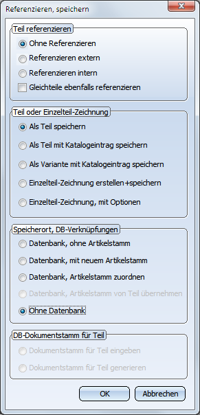 6. Speichern Sie die Skizze mit der Funktion Teil referenzieren, Speichern, ET-Zeichnung , z.B. unter dem Namen MUSTERSKZ im HiCAD Unterverzeichnis KATALOGE/WERKSNORMEN/MUSTERBOHRUNGEN.