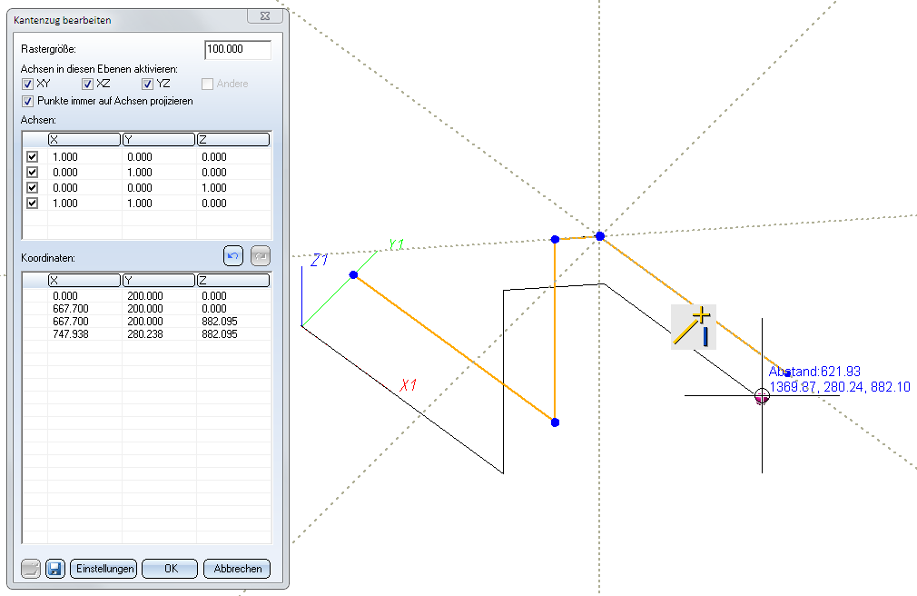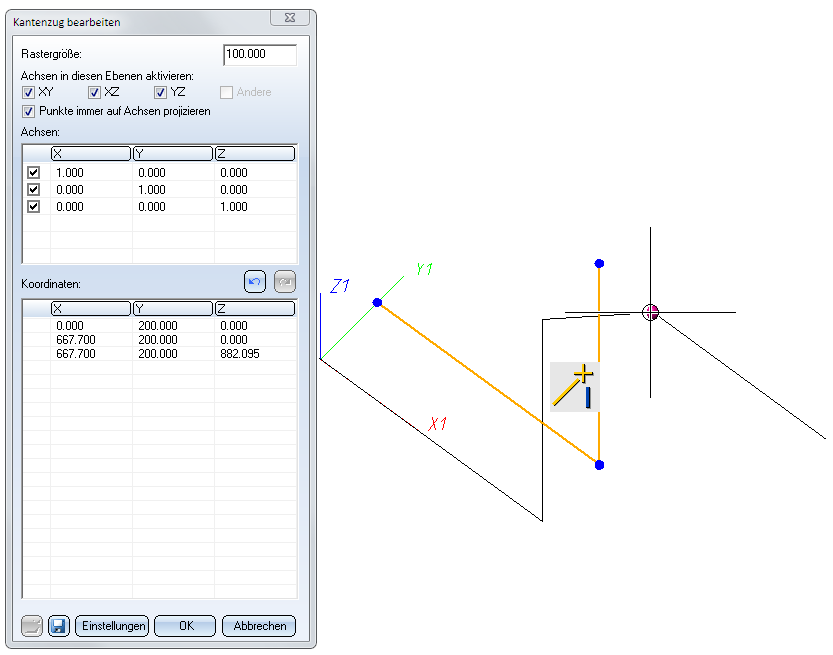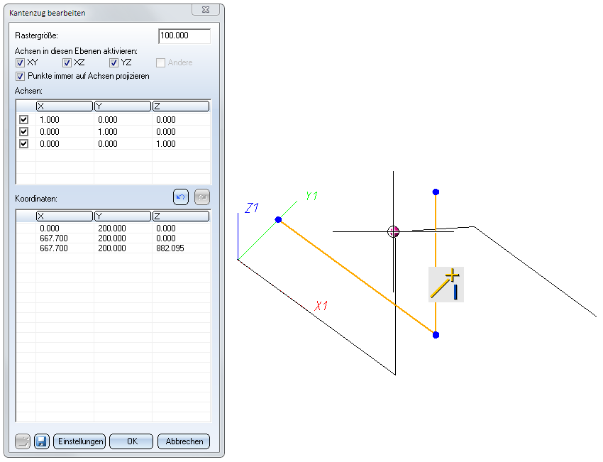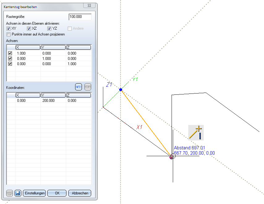 Daher aktivieren wir die Checkbox Punkte immer auf Achsen projizieren. Das erlaubt uns, den gewünschten Punkt zu wählen.
