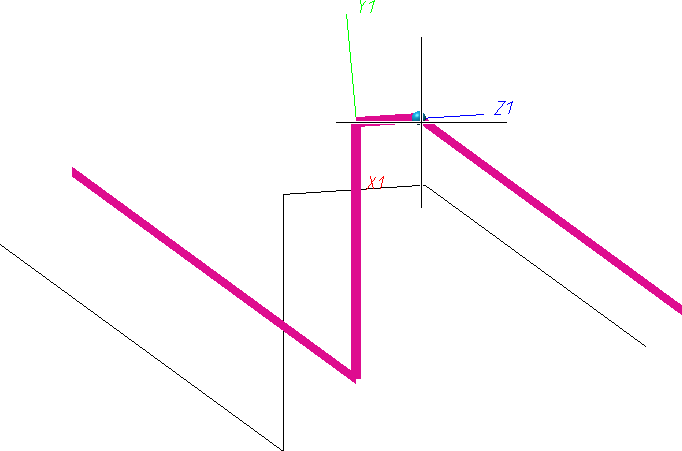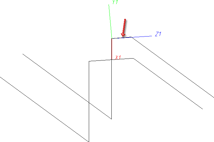 Nun stellen wir fest, dass wir keine passende Achse haben, um parallel in diagonaler Richtung fortzufahren. Daher definieren wir nun eine zusätzliche Achse, die wir aus der Konstruktion abgreifen.