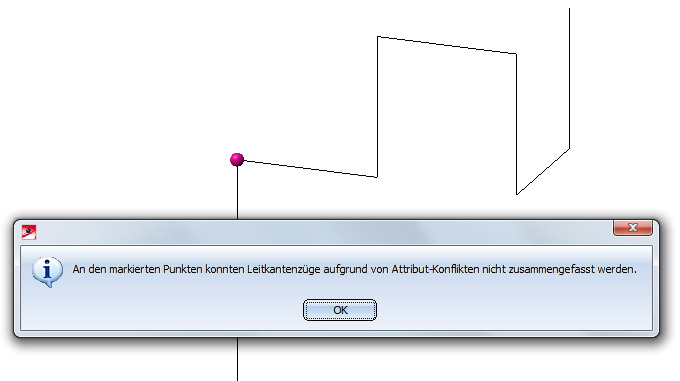 Es kann auch der Fall eintreten, dass Leitkantenzüge nicht zusammengefasst werden können, weil die ihnen zugeordneten Attribute wie z.B. Nennweite oder Isolierung nicht zusammenpassen. In solch einem Fall erscheint folgender Hinweis: